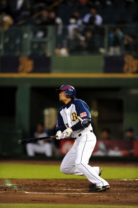 1番 田中賢 右安 内角へのストレートをライトに弾き返されて3塁ランナーが生還し、1塁ランナーも3塁へ・・・ オ2-1日 ![]() 2