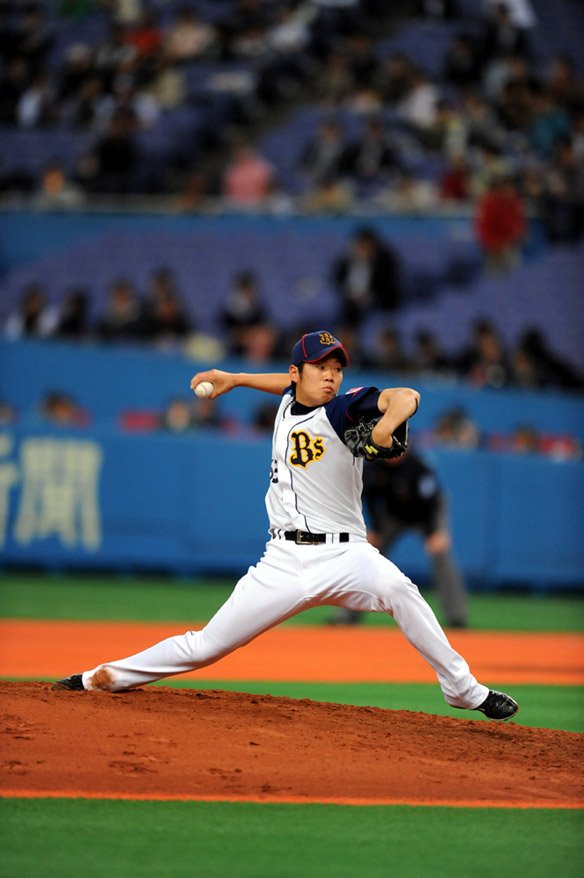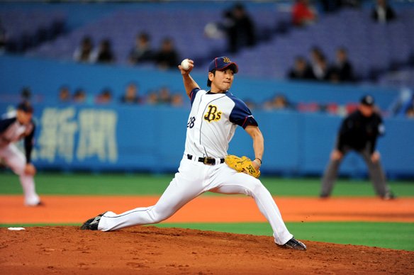 投手 近藤 8番 鶴岡 三ゴ 内角への変化球を引っ掛けさせた三遊間へのゴロをラロッカが飛びついて打球を止め、落ち着いて1塁へ送球! |