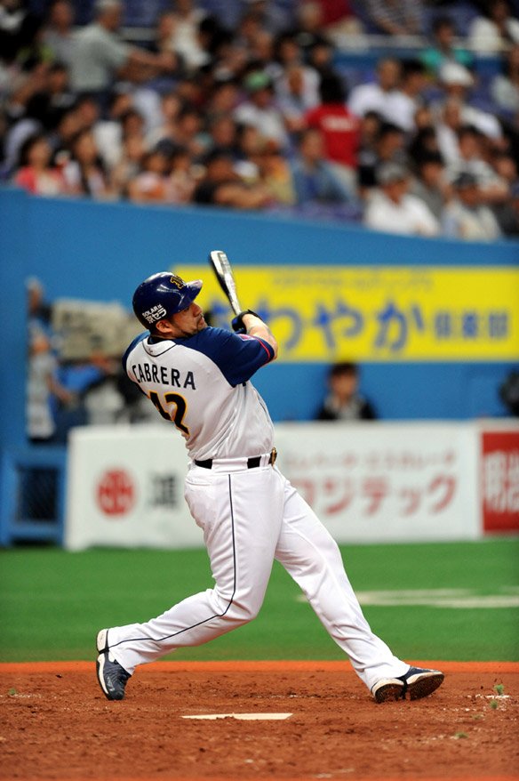 投手 真田 4番 カブレラ 中安 高めの144km/hのストレートを叩いてセンターの右へ打ち返した! カブレラ選手は本日3安打の活躍!! |
