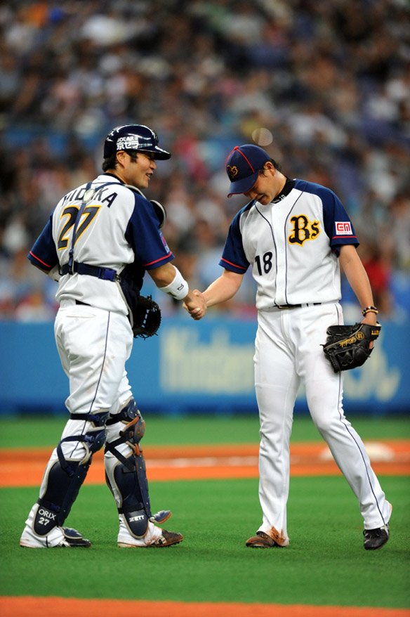 1番 下園 空三振 アウトコースへ沈む134km/hの変化球にバットが空を切り、空振り三振で試合終了!! バファローズ、2桁安打の快勝で、見事に交流戦を制しました!! |