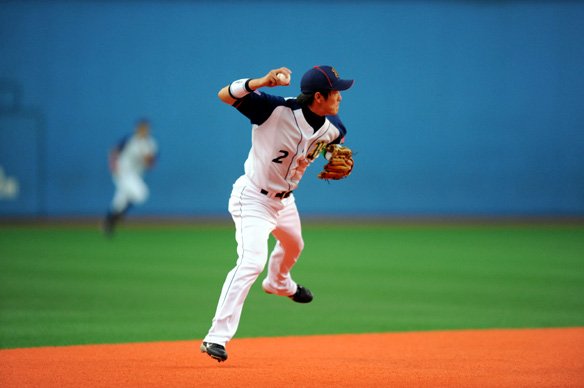 3番 栗山 二ゴ 外角低めへの変化球を引っ掛けさせたゴロを後藤が正面で捌いて1塁へ送球! |