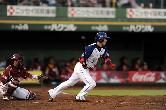 1番 聖澤 右安 真ん中への緩い変化球を叩かれた強いゴロが一二塁間を抜けていった |