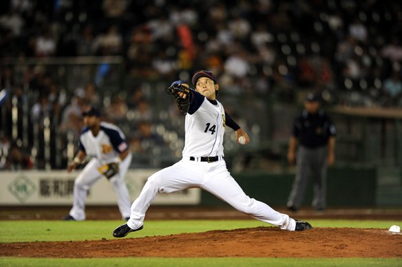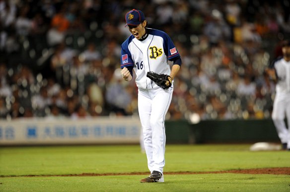 投手 平野佳 8番 ルイーズ 四球 フルカウントから落ちる変化球が内角高めへ抜けて1塁へ歩かせた |