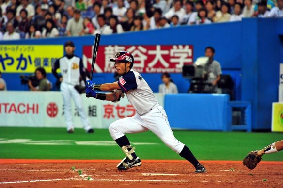 投手 岩隈 6番 バルディリス 右安 2球目のインコースへの121km/hの変化球打ち上げてしまったが、ふらふらっと上がった飛球は、後退するセカンドと前進するライトの中間にポトリと落ちた! |