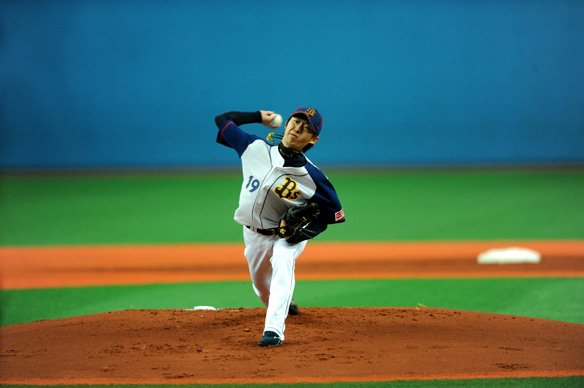 投手 平野佳 8番 根元 投犠 3塁線へバントしてきたゴロは、平野がキッチリと処理して1塁へ送った。 |