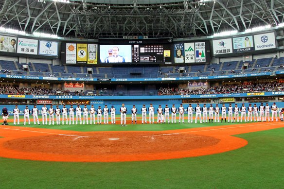 7番 中田 左翼二 真ん中低めへの変化球を引っ張られ、痛烈な打球がバルディリスの頭上を越えてレフト線へ転がった・・・ フェンスまで到達した打球を見て2塁ランナーが生還し、バッターランナーも2塁へ オ0-4日 ![]() 0