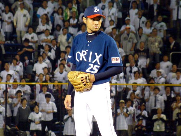 投手 長谷川 1番 西岡 一ゴ 高めの133km/hの変化球を引っ掛けさせた弱いゴロはファーストへ転がり、喜田剛が処理してそのまま1塁ベースを踏んだ! |