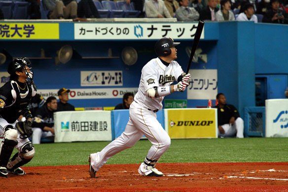 投手 木佐貫 6番 多村 左中二 初球の変化球を芯で捉えられた打球が左中間を破りワンバウンドでフェンスに到達。この間にバッターランナーは2塁へ。 |
