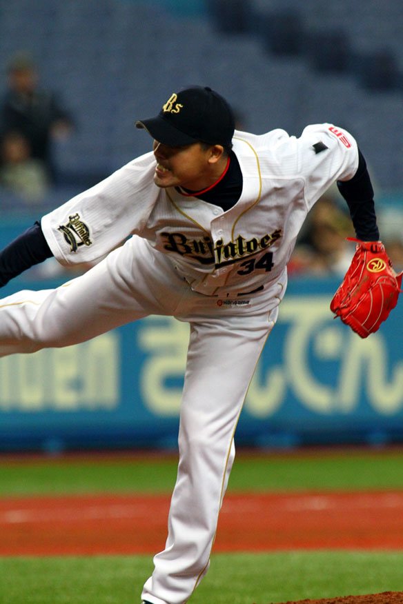 投手 ファルケンボーグ 6番 李スンヨプ 捕邪飛 内角高めへのストレートに差し込まれて打ち上げたフライを、キャッチャーがファウルグラウンドで捕球。 |