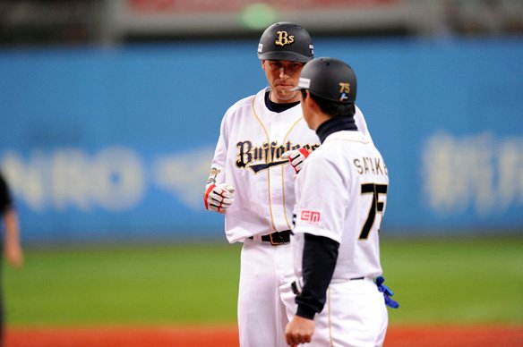 投手 平野佳 1番 田中賢 右中二 甘く入った変化球を狙われ、前進守備の右中間を深々と破られてしまった…。 オ1-3日 ![]() 1