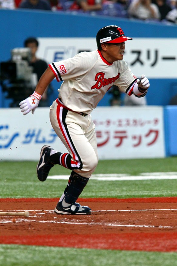 投手 西勇 9番 天谷 一ゴ失 引っ張られたファーストへの強い打球を、ヘスマンがこぼしてしまう。 拾い直してベースカバーの西へトスするも、ヘッドスライディングの天谷が先にベースに到達してしまう…。 |