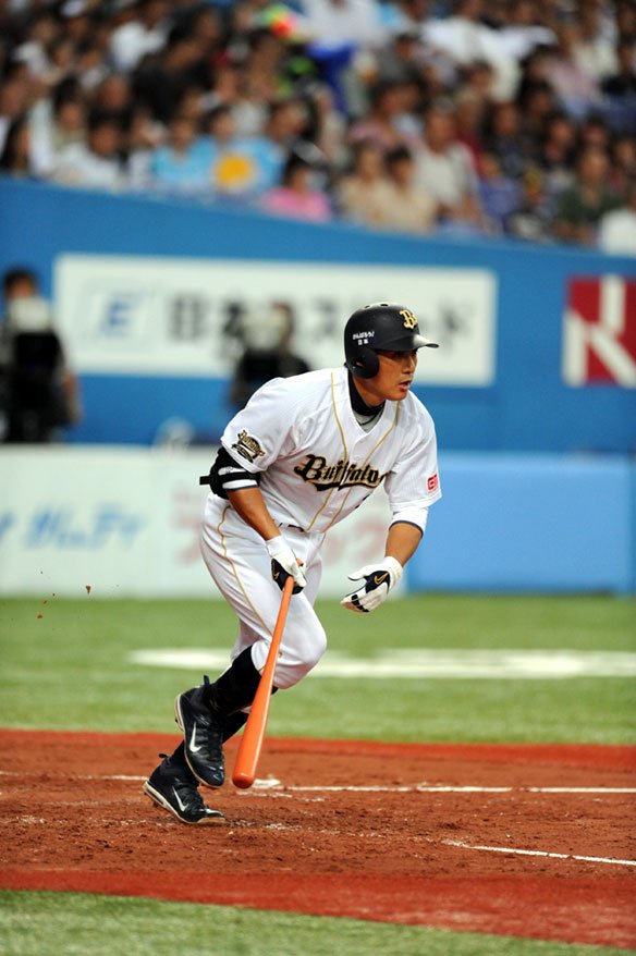 5番 松中 左飛 外角低めへ逃げていく変化球をバットの先で打たせたフライを、T-岡田が前進して球の落ち際でスライディングキャッチ!ナイスプレイ!! |