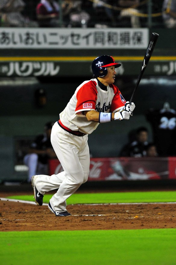 6番 李スンヨプ 右安 2球で追い込まれるも、高めにきた133km/hの変化球を捉えてライト前に打ち返した! |