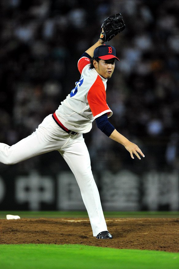 2番 岡田 一ゴ フルカウントから内角低めの116km/hの変化球に合わせて打ってきたボテボテのゴロはファーストの正面に転がり、李スンヨプが処理してそのまま1塁ベースを踏んだ! この間に2塁ランナーは3塁へ。 |