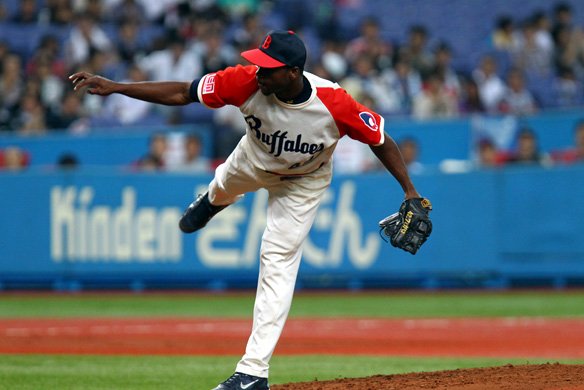 6番 李スンヨプ 一ゴ 初球、アウトコースへの128km/hの変化球を引っ張った打球はファーストが倒れこむようにして捌き、起き上がって1塁ベースを踏んでアウト。 さらに2塁へ送球されたがこれが悪送球となってレフトへ転がっていき、2塁へ到達した1塁ランナーのバルディリスは3塁を陥れた! |
