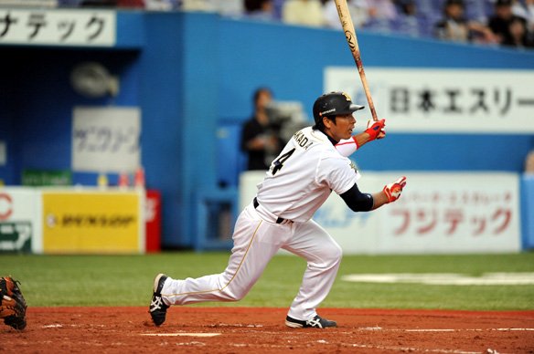 3番 糸井 左翼二 真ん中内寄りへの変化球で詰まらせるも、フラっと上がった打球はバルディリスの上を越えてレフト線へポトリ…。 T-岡田が打球を処理する間に2塁ランナーが生還し、バッターランナーも2塁へ進塁…。 オ1-1日 ![]() 1