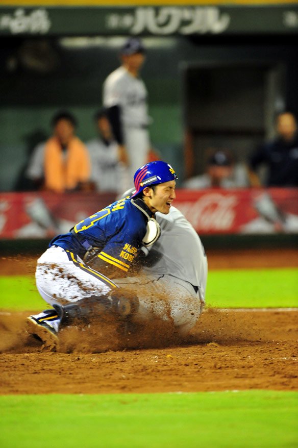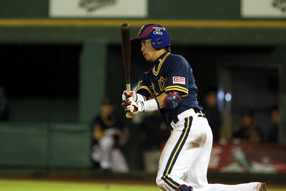 6番 李スンヨプ 左犠飛 高めのボール気味の127km/hの変化球を振り抜いた打球は後退するレフトに追いつかれたが、3塁ランナーの大引がタッチアップから生還!さらに2塁ランナーのT-岡田もタッチアップで3塁へ! オ2-8西 ![]() 2