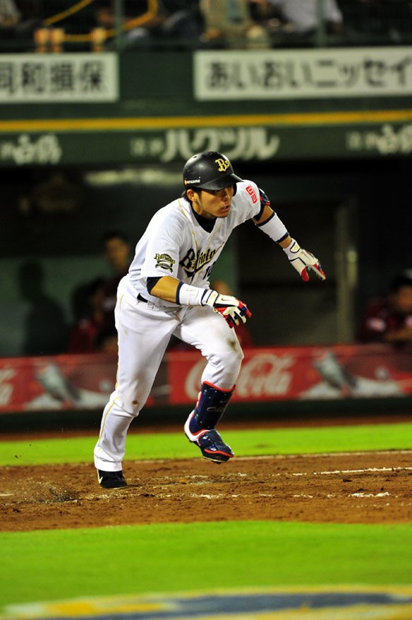 5番 草野 二安 外角への変化球を引っ張られた一二塁間へのゴロを後藤が横っ飛びでナイスキャッチも、1塁ベースカバーに入った金子千尋への送球は間に合わず。 |