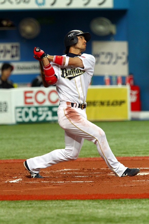 6番 李スンヨプ 右中二 外角低めへの抜いた変化球を芯で捉えたライナー性の打球が右中間を抜け、フェンスダイレクト!!! 3塁から大引、2塁からT-岡田が生還!!! 1塁ランナーの駿太は3塁、打った李スンヨプも2塁へ進塁!!! オ3-4ロ ![]() 3