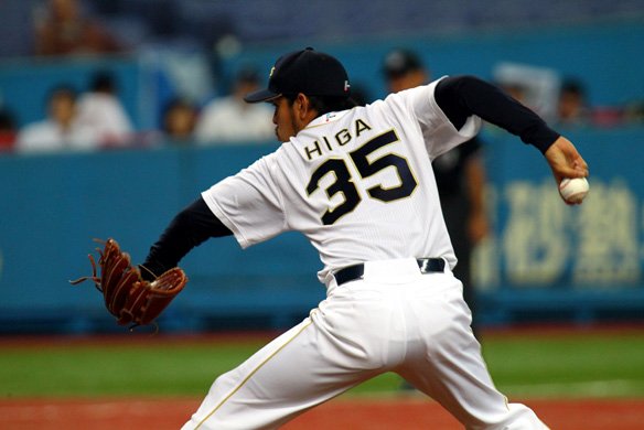 投手 上野 5番 バルディリス 二飛 外角へ逃げていく変化球に泳いで打ち損じ、高く上がったフライをセカンドが定位置から下がって捕球した。 |