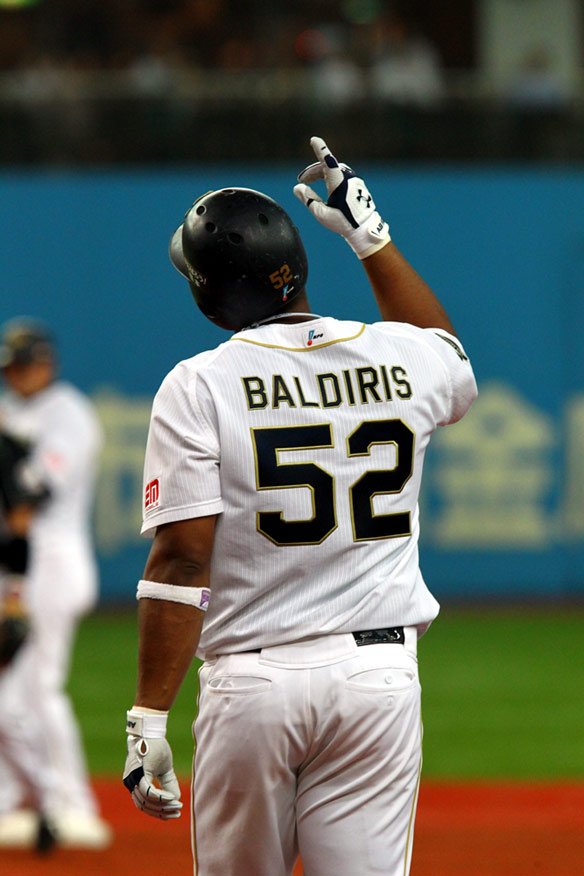 5番 バルディリス 左安 3ボールから真ん中に入ってきたストレートを狙い撃ち!引っ張った当たりをショートの頭上を越えていった!! |