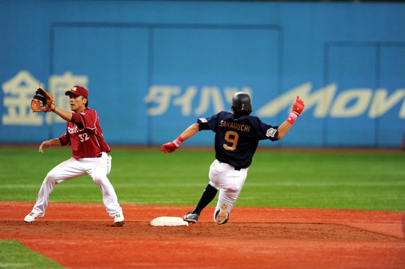 5回、盗塁を決めた坂口選手