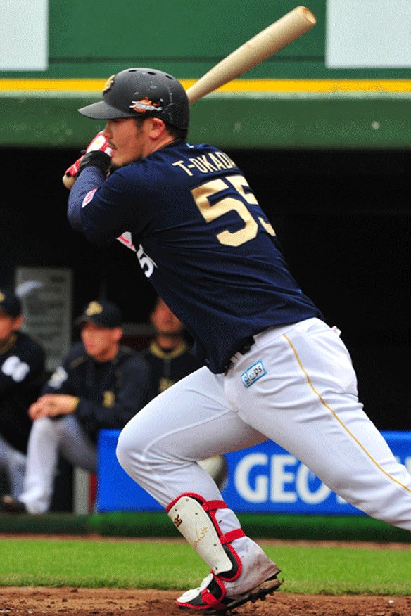 6番 T-岡田 右安 0-2からの外角低めのカーブを引きつけてたたくと、低い打球が一二塁間へ転がり、飛びついたセカンドのグラブの脇を抜けていった! |
