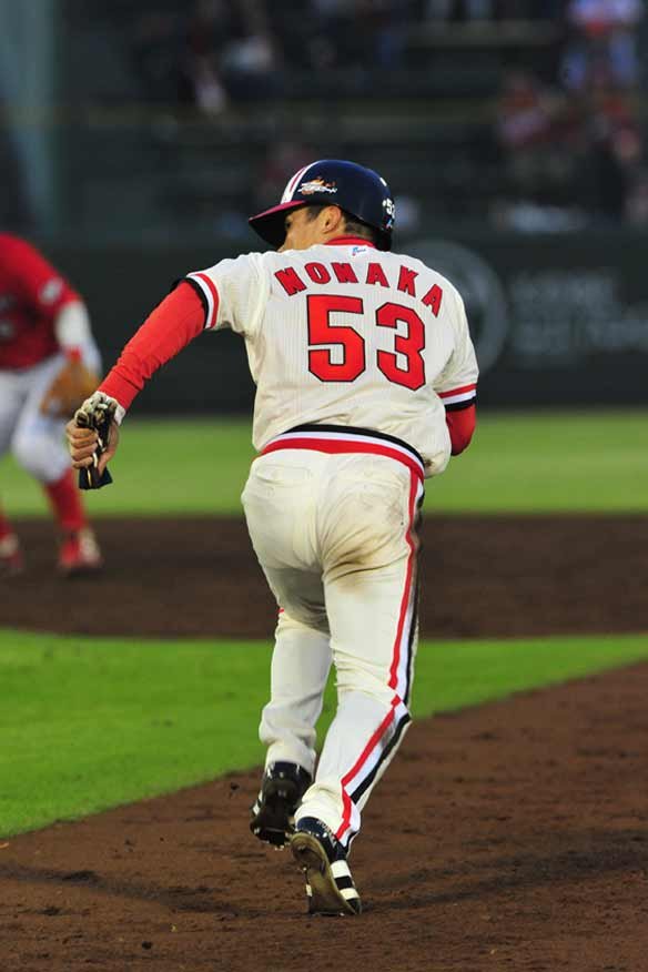 4番 李大浩 中越安 2-1から高めのストレートを振り抜くと、前進守備を敷いていたセンターの頭上を大きく越える打球となった! 2塁ランナー・野中は悠々ホームインし4対3!! 4番の一撃でサヨナラ勝ち! ![]() 3