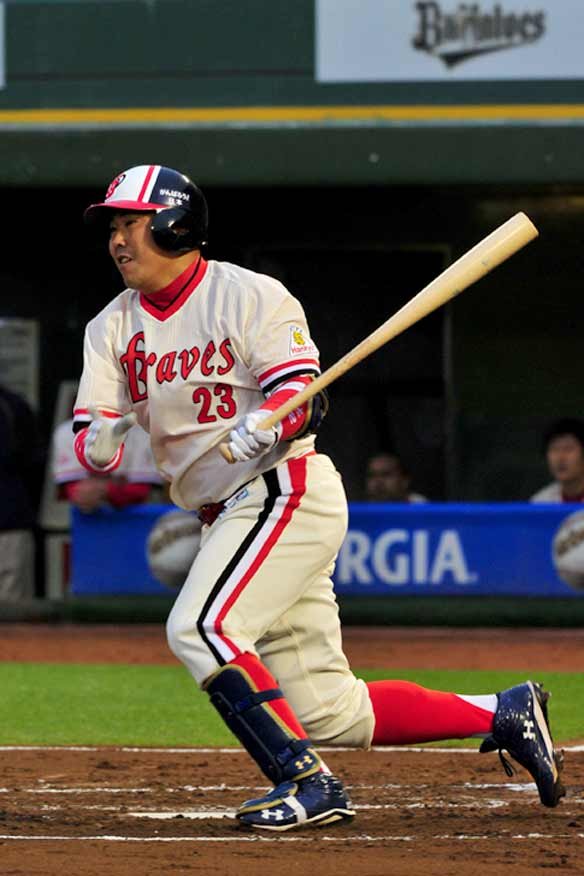 4番 李大浩 左安 1-1から高めの変化球を引っ張ると、鋭いゴロは三遊間を破っていく。2塁ランナーは3塁でストップ。 |