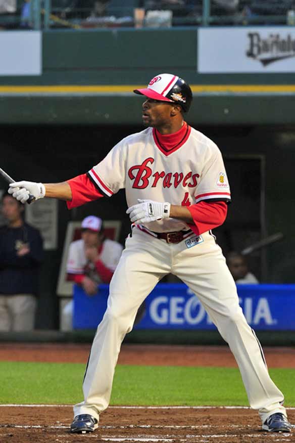 4番 李大浩 四球 フルカウントから外角低めのストレートにバットを止めた! |