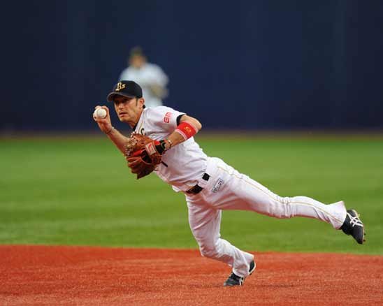 4番 李大浩 遊ゴ 1-2からの外角低めのスライダーに体勢を崩されながらも打つと、打球はピッチャーの足下を抜けて二遊間へ。しかし回り込んだショートに捕球されると、素早く1塁へ送球された。 |