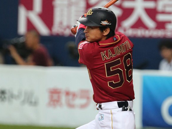 5番 角中 右中二 2-1から内角ストレートを捉えられた打球はライトの頭上を越えてフェンスまで到達。中継プレーの間に1塁ランナーは3塁に、バッターランナーは2塁にそれぞれ進んだ。 |