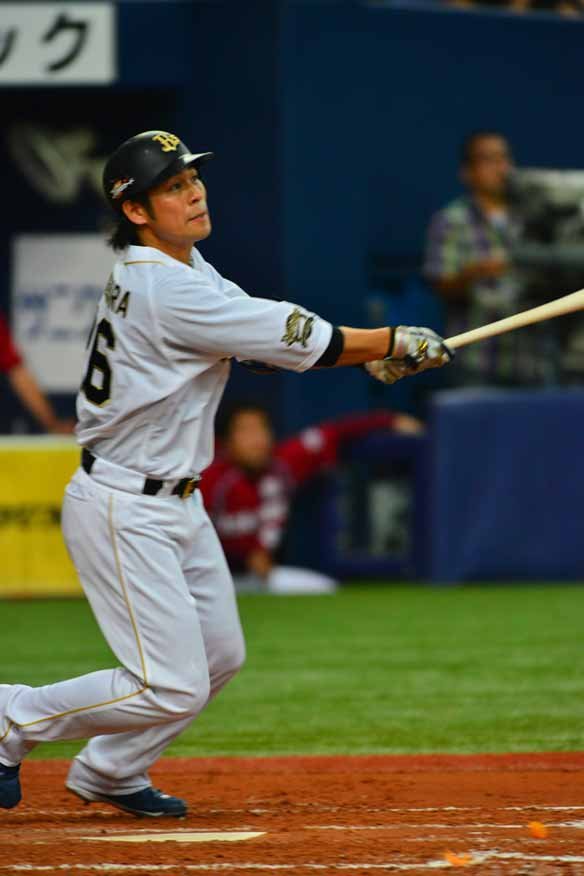 5番 T-岡田 左翼安 1-2から高めのストレートをコンパクトに打ち返し、低いゴロが広く空いた3塁線を破っていく! 打球処理の間に1塁ランナーは3塁まで到達! 打ったT-岡田は1塁でストップ。 |