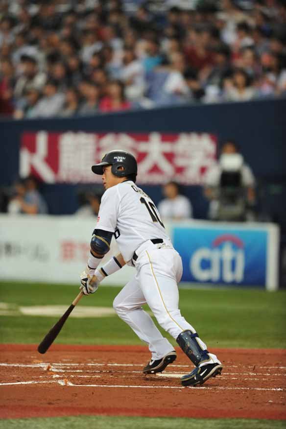 4番 李大浩 右安 2-2から外角のストレートを逆らわずに流し打った打球は、あっという間にライト前へ。 |