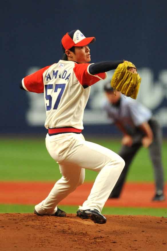 投手 山田 1番 ヘルマン 四球 3-1から外角高めにストレートが外れてしまった。 |
