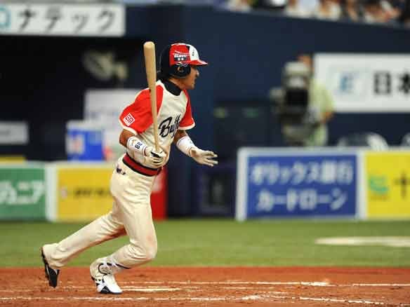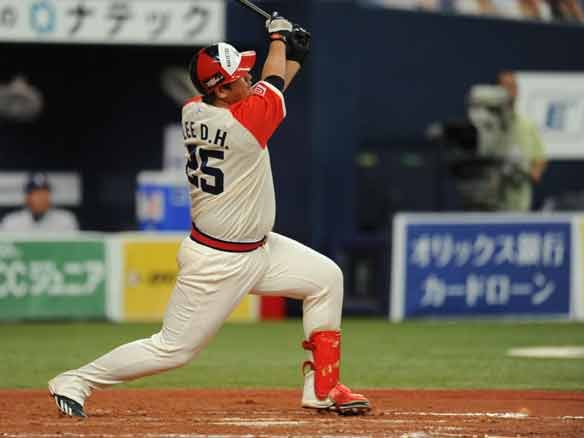 センターへの犠牲フライで打点をあげる李大浩選手