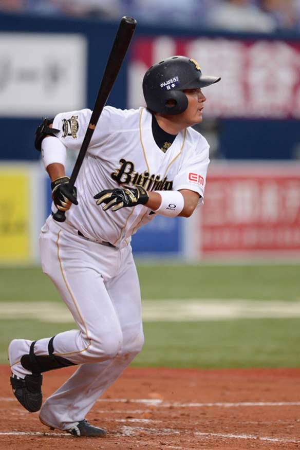 5番 T-岡田 中安 0-2から低めのスライダーをうまく打ち返し、ゴロの打球が横っ跳びしたセカンドのグラブの先を抜けていった。2塁ランナー・李大浩は3塁でストップ。 |