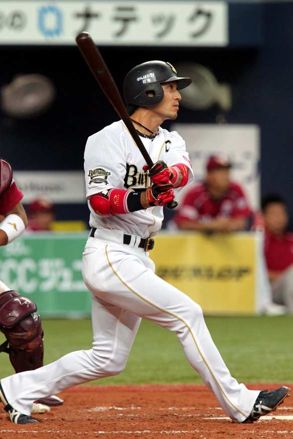 9番 鉄平 遊邪飛 2-2から高めの変化球を打ち上げさせた打球は、ショートがレフト線まで追いかけて捕球した。 |