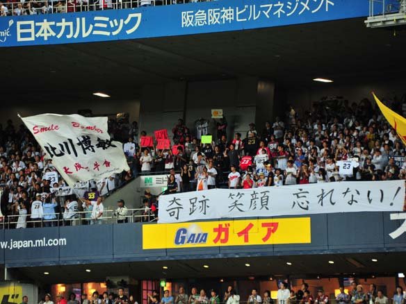 北川選手の横断幕が掲げられたライトスタンド