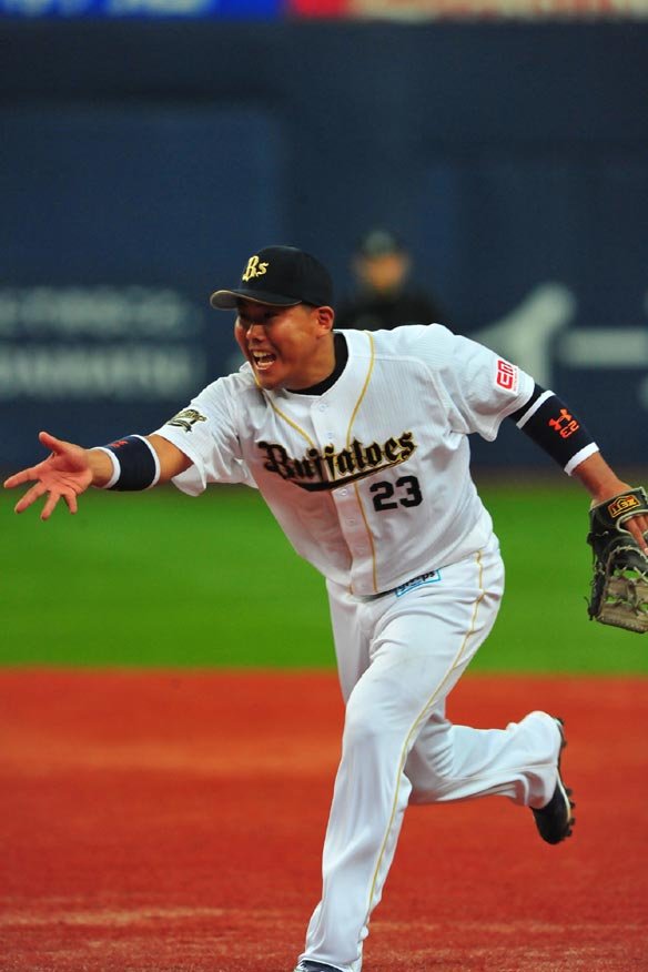 4番 李大浩 遊ゴ 初球の外角のスライダーに引っ掛けてしまい、打球はショートに処理された。2塁ランナー・T-岡田は動けず。 |