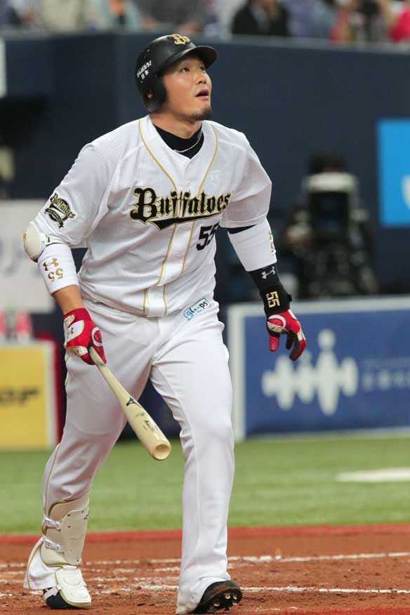 4番 李大浩 左本 2アウト2塁の1-0から左中間への2ランホームランでオリックス先制! オ2-0西 ![]() 2
