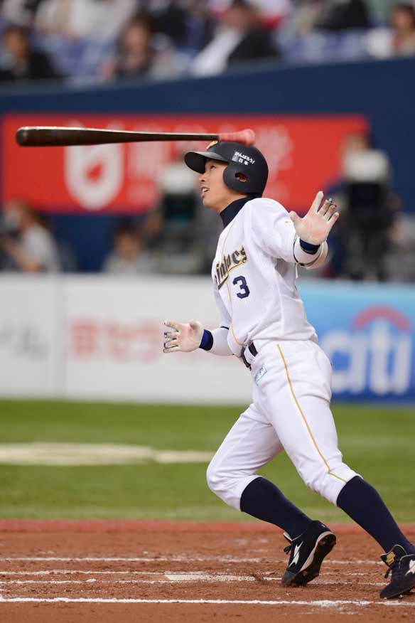 投手 岸 3番 糸井 三安 サードへの内野安打 1塁 |