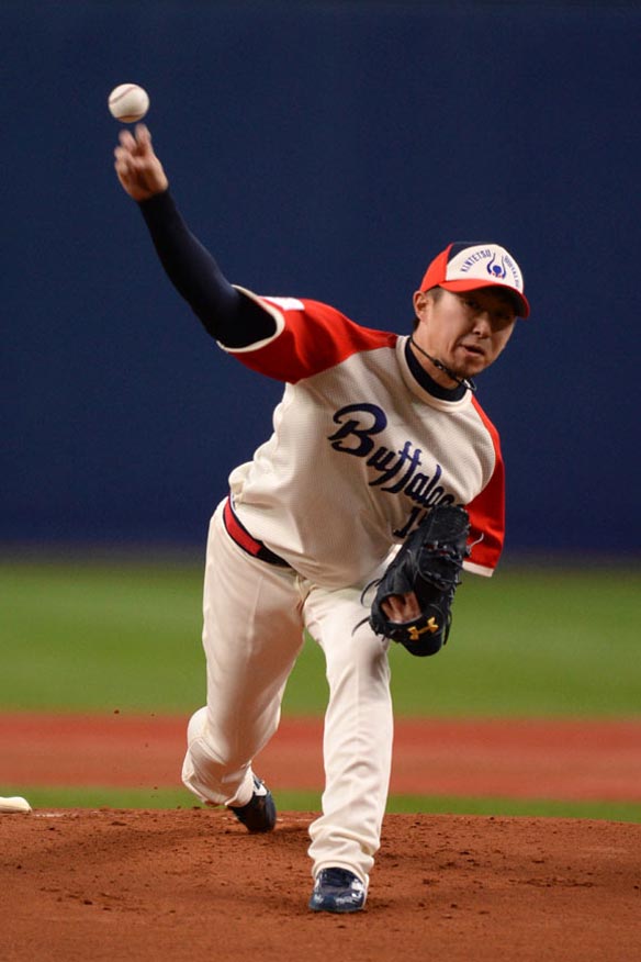 投手 攝津 4番 李大浩 三ゴ 低めのシンカーを打つもサードゴロ 1アウト |
