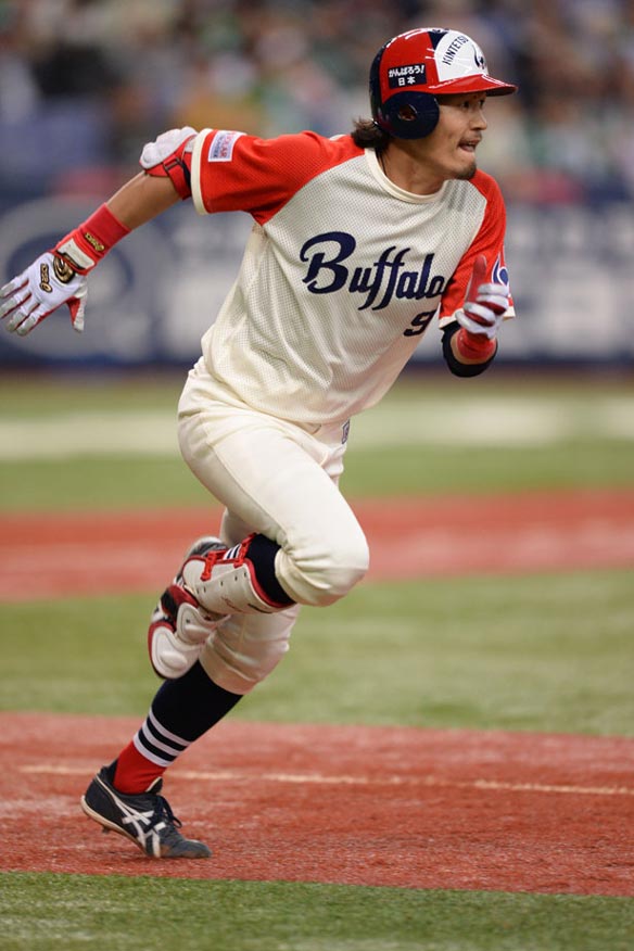 3番 内川 左安 レフトへのヒットを放つ 1塁 |