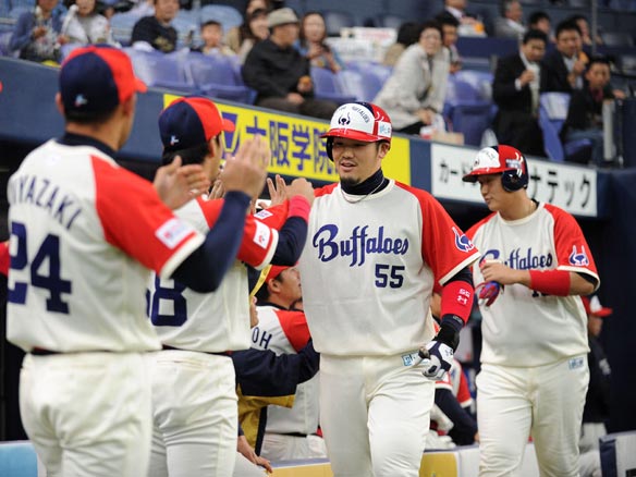 投手 攝津 4番 李大浩 死球 デッドボールを受ける 1塁 |