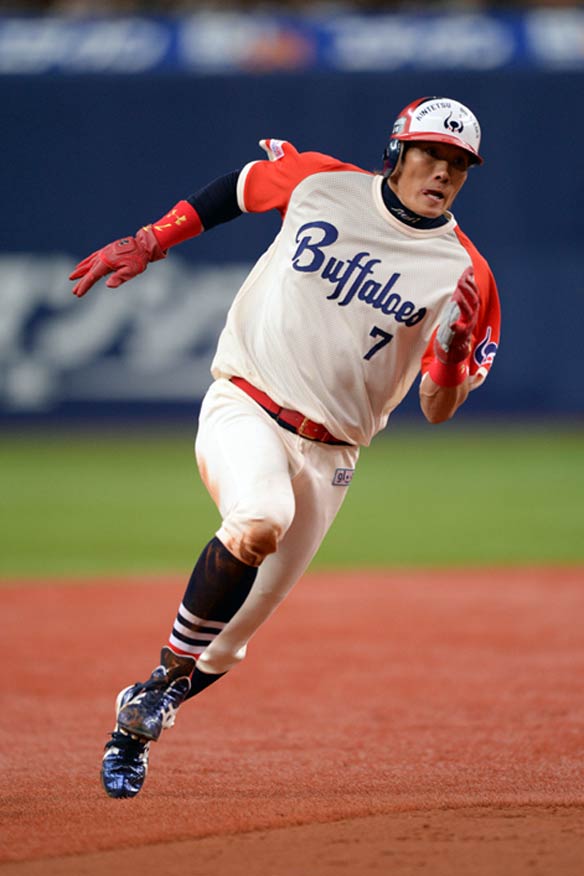4番 李大浩 右中二 フェンス直撃の二塁打を放つ 2塁 |