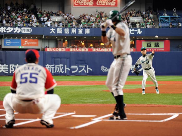 投手 金無英 4番 李大浩 遊ゴ 外角の変化球を打つもショートゴロ 1アウト2,3塁 |