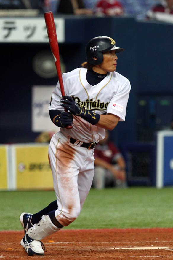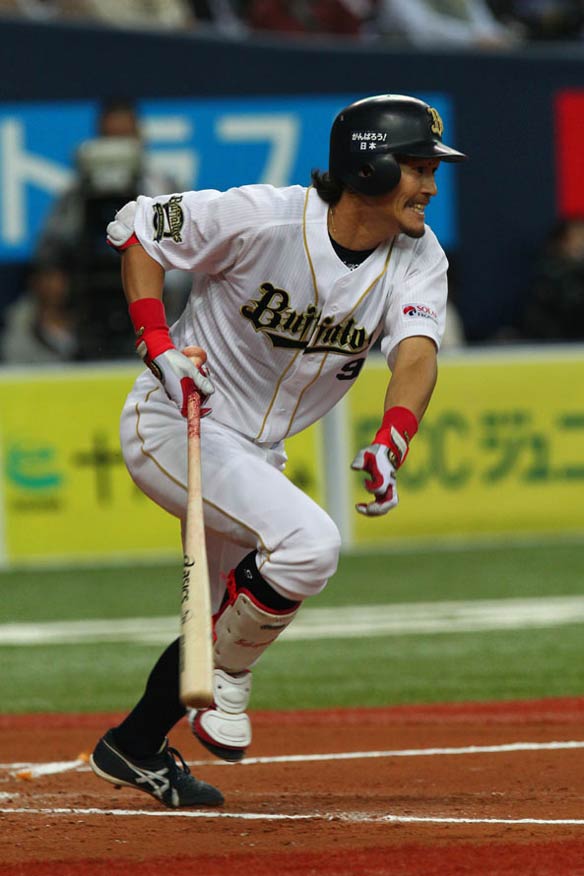 3番 糸井 中安 センターへのヒットを放つ 1塁 |