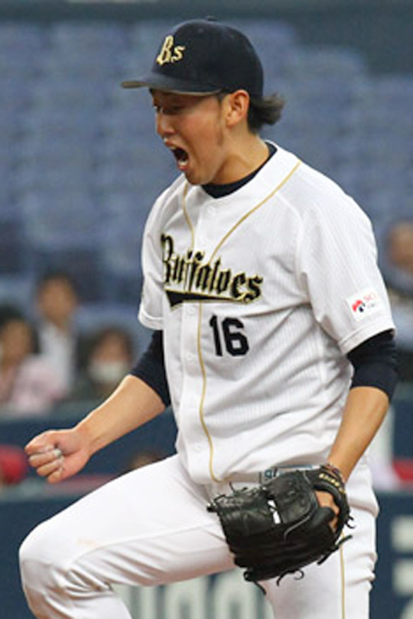 空振り三振を奪い雄叫びを上げる平野佳投手