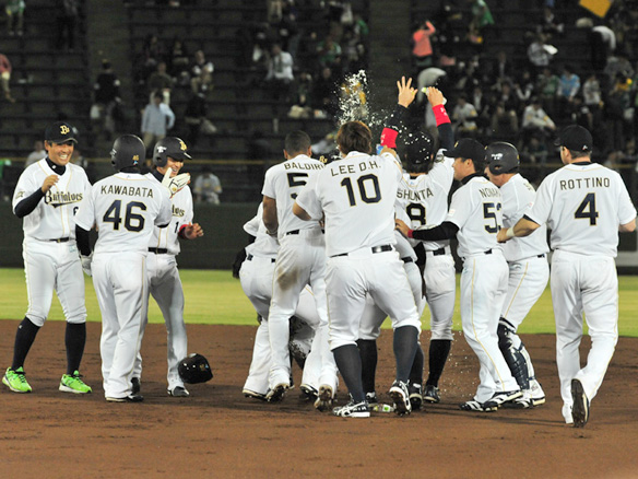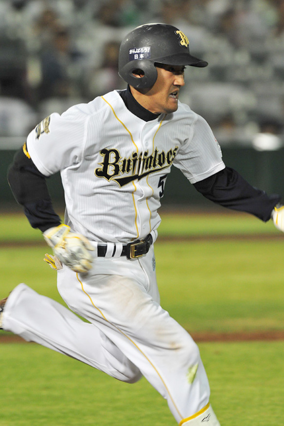4番 李大浩 中安 1アウト2塁からセンターへのヒットで出塁 |